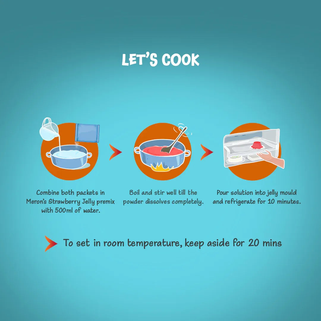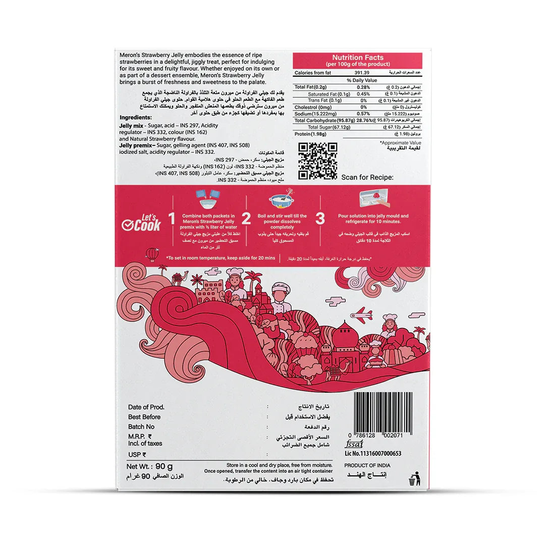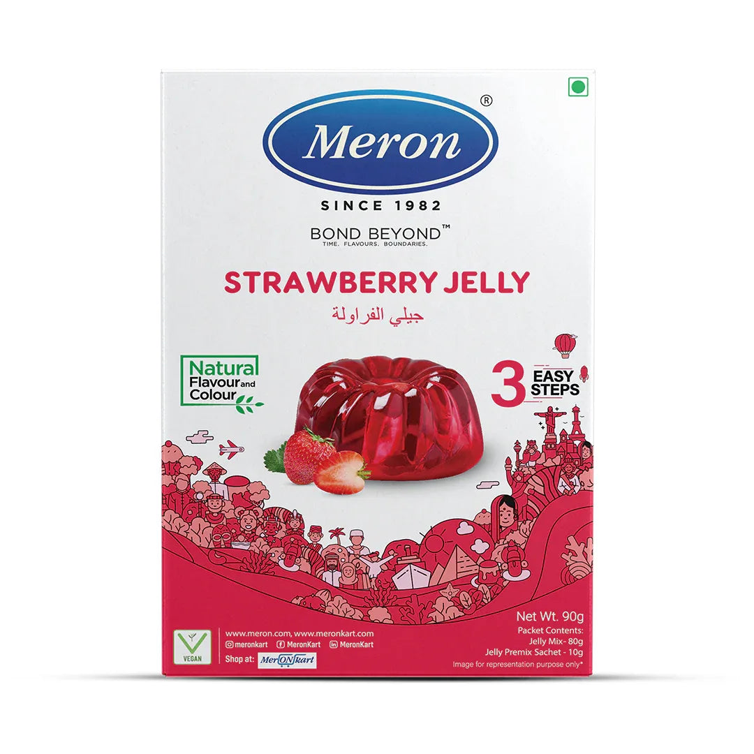 Meron's Strawberry Jelly powder embodies the essence of ripe strawberries in a delightful, jiggly treat, perfect for indulging for its sweet and fruity flavor. Whether enjoyed on its own or as part of a dessert ensemble, Meron’s Strawberry Jelly brings a burst of freshness and sweetness to the palate.
