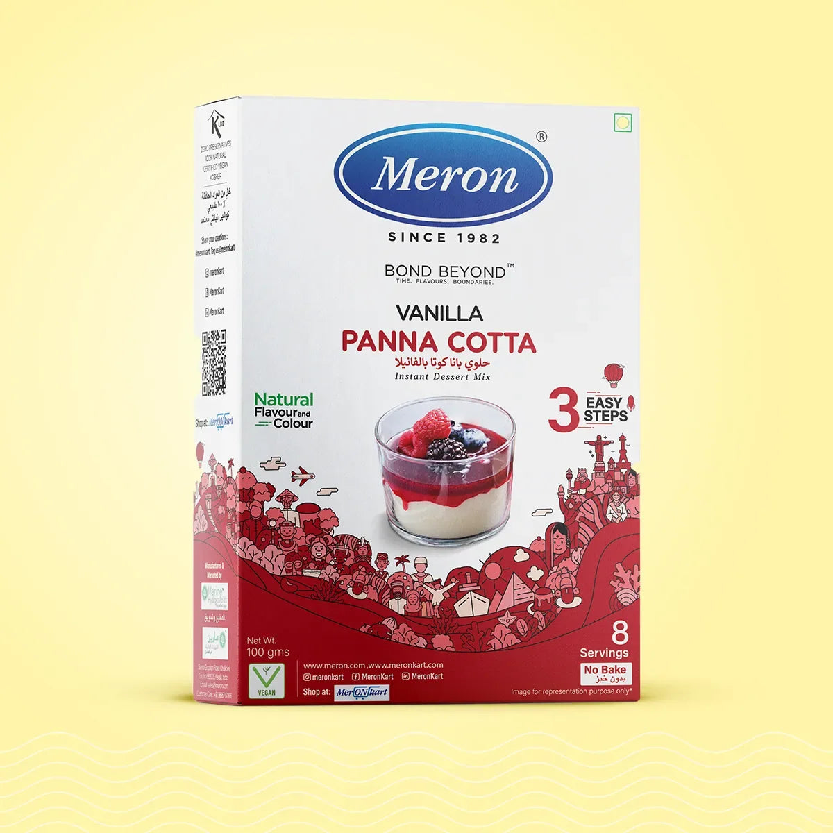 Meron’s vanilla pannacotta is classic, Italian dessert for a summer day. Its light and delicate flavours make it a sweet indulgence, delicious on its own or paired with fresh berry toppings. Even better, get adventurous and serve it with caramel sauce, chocolate ganache, nuts or praline. Store in a cool and dry place, free from moisture
