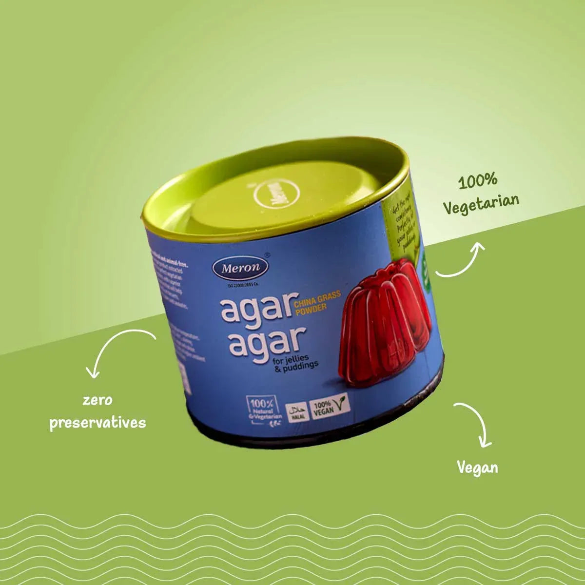 Our all-natural, 100% certified Vegan. Agar Agar powder is extracted from seaweed. This gelling agent gives instant setting, excellent finish and an extended shelf life. Perfect for custards, jellies, jams, tarts, puddings, fruit caviar, vegan cheese and set curd.