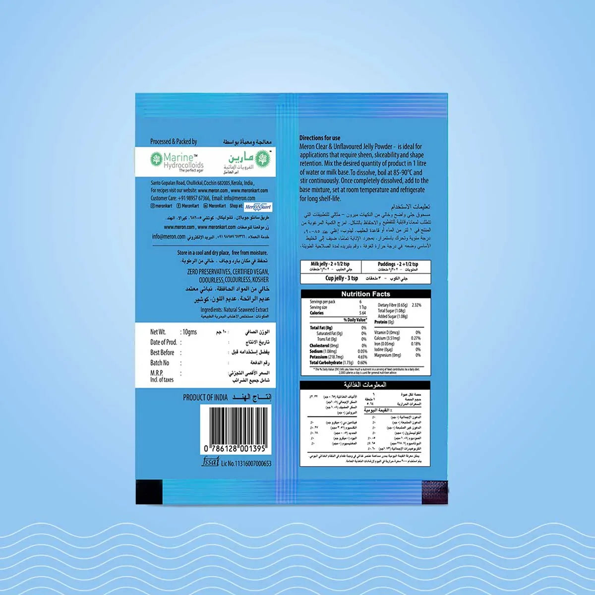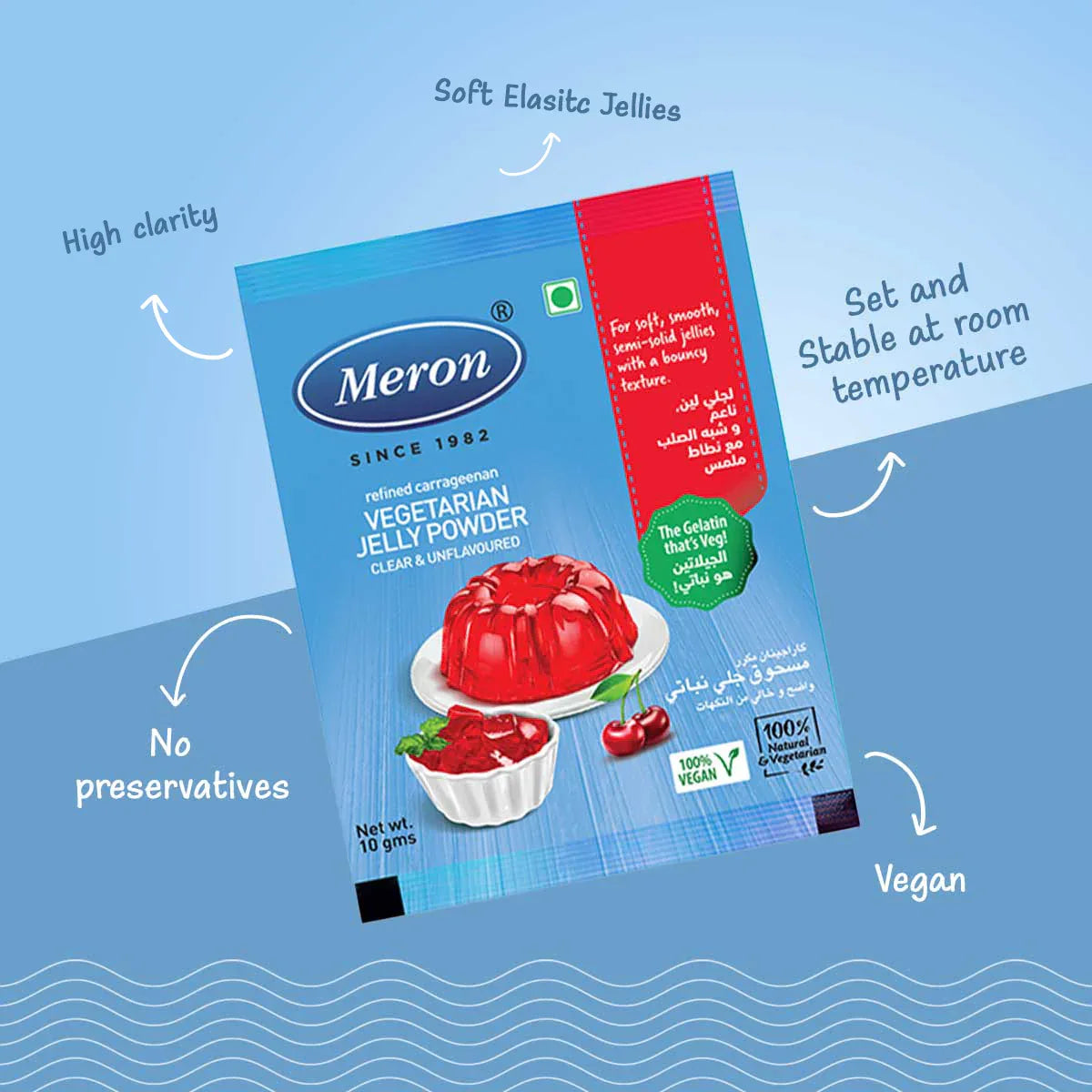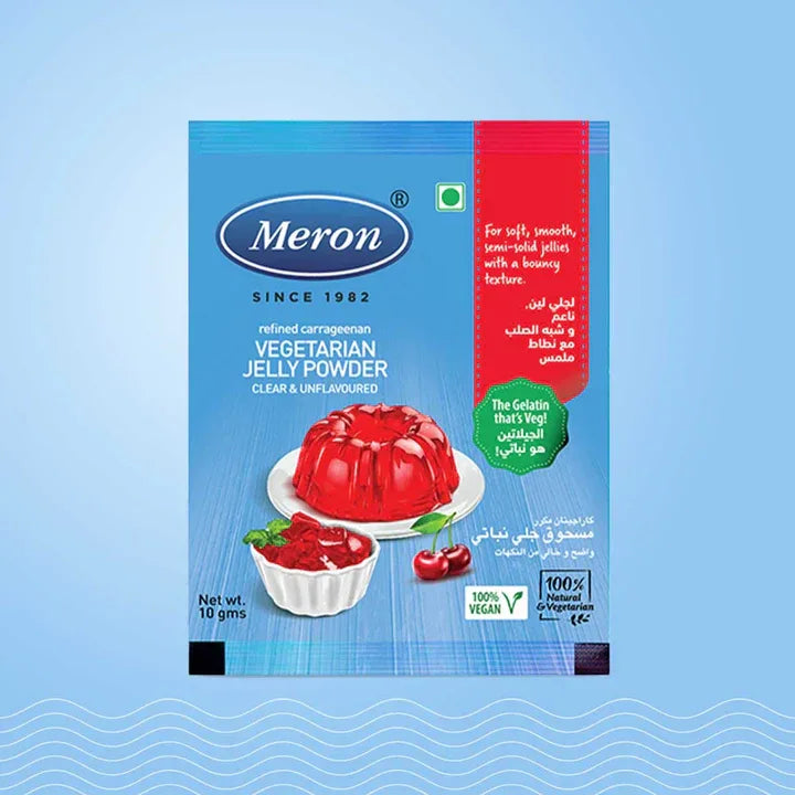 Our Vegetarian Jelly Powder gets set in a short time, with minimal water separation.100% certified Vegan product extracted from seaweed, water-soluble and easy to set at room temperature. Your ideal choice for water and milk-based jellies, cup jellies and a wide range of other gel textures. The combo box consists of five individual sachets, and each sachet contains a generous 10 grams of the product.