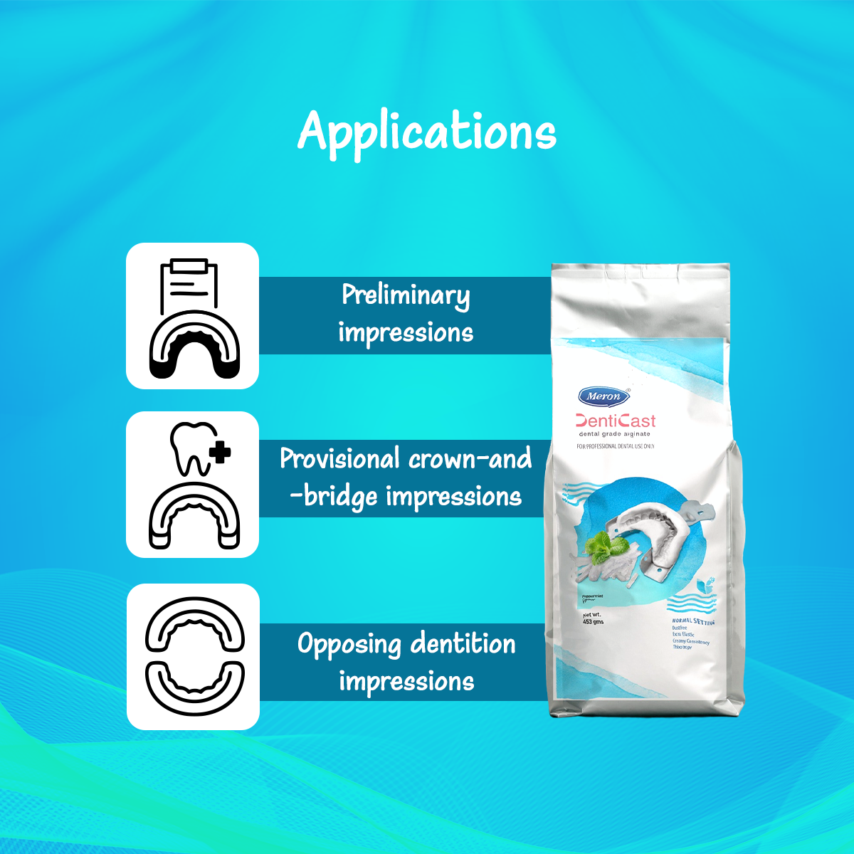 Alginate Dental material is an irreversible hydrocolloid impression material. It can be used for preliminary impressions, provisional crown-and-bridge impressions and opposing dentition impressions. The advantages of using alginate dental powder include a better tolerability on the part of the patient, the ease of manipulation, the short time needed for execution, the instrumentation and the very simple execution technique and possibility of detecting a detailed impression (even in the presence of undercuts) in a single step.