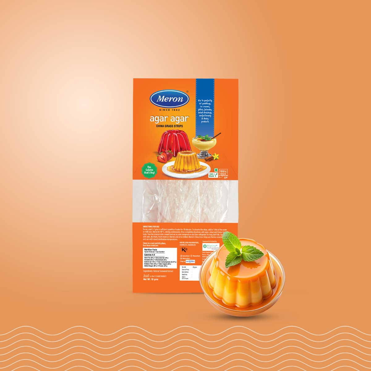 Our all-natural, 100% certified Vegan. Agar Agar powder is extracted from seaweed. This gelling agent gives instant setting, excellent finish and an extended shelf life. Perfect for custards, jellies, jams, tarts, puddings, fruit caviar, vegan cheese and set curd.