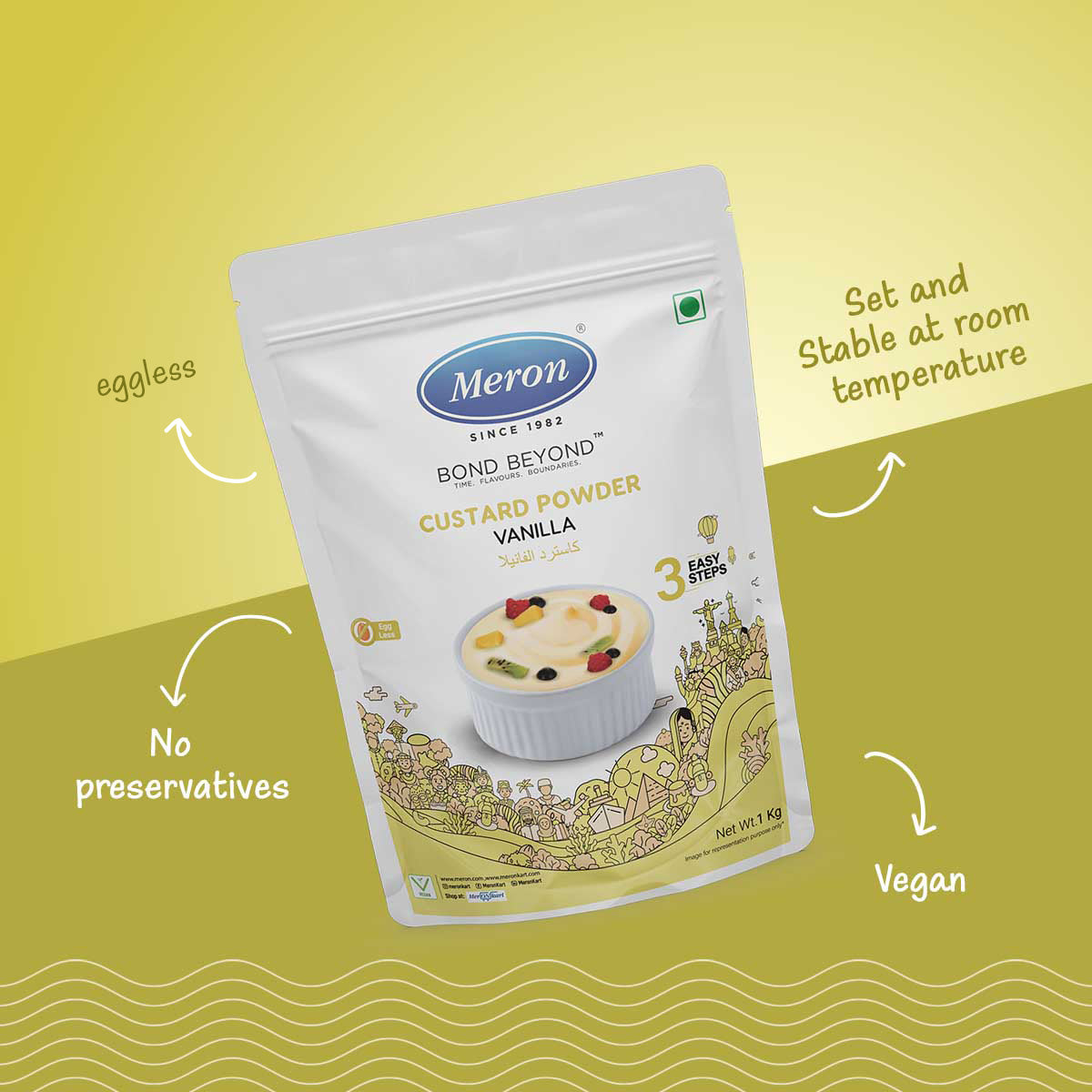 Meron’s Vanilla Custard is a smooth, creamy delicacy known for its rich and indulgent flavor profile. It’s a timeless classic that combines the warmth of vanilla with the comforting creaminess of custard. Our new premix offers the perfect balance of sweetness and velvety texture, delivering the essence of freshly-made custard with a hint of aromatic vanilla.