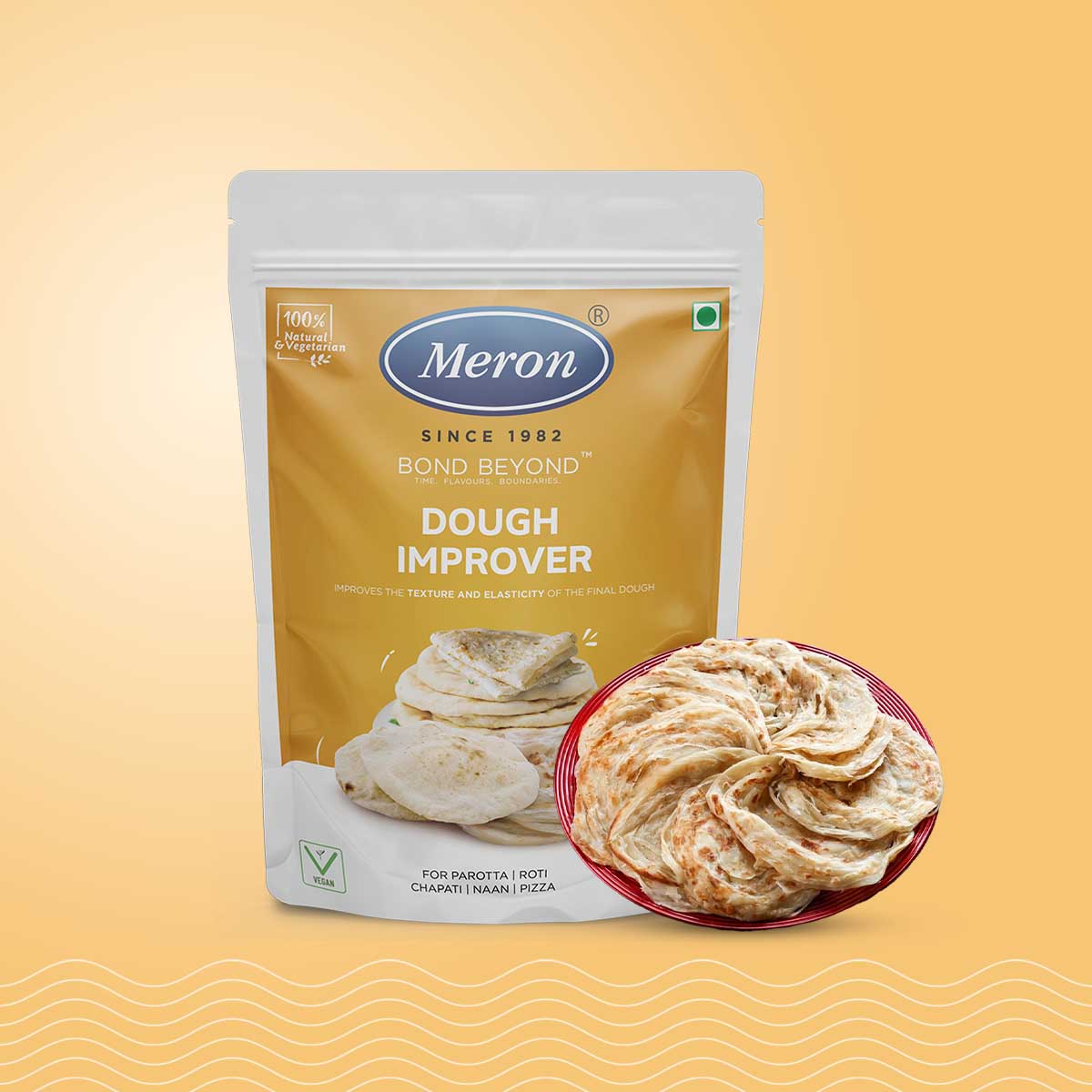 Meron’s Dough Improver is a food additive which when combined with flour will improve the functionality of the final dough. It is an ingredient that improves the production and consistency of a dough. The purpose of a dough improver is to simplify and fasten the dough making process. Meron’s Dough Improver will provide you the highest quality in every application and in the baking process. It can be used for thickening, stabilization and water binding applications in foods such as parotta, bread, naan, chapatti etc