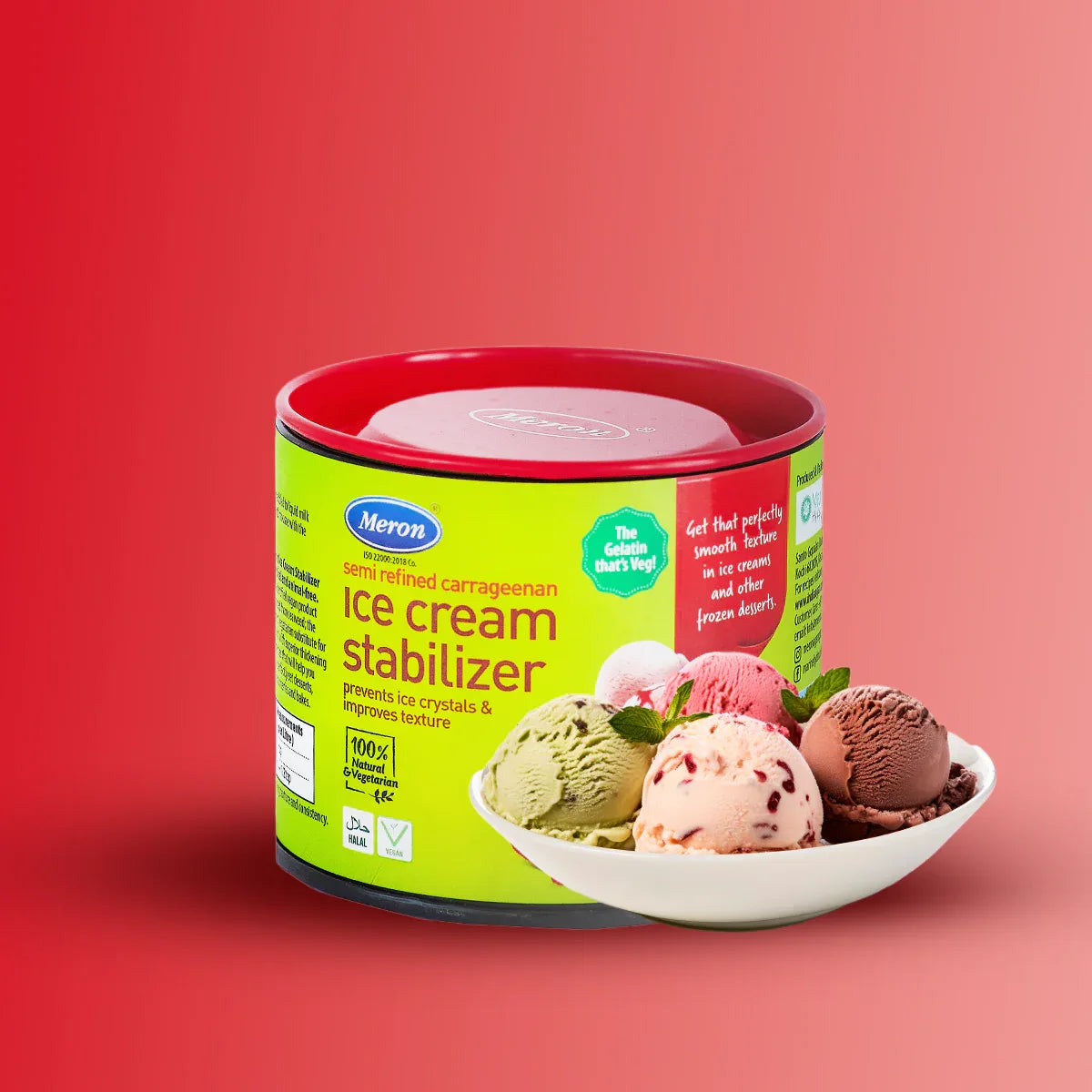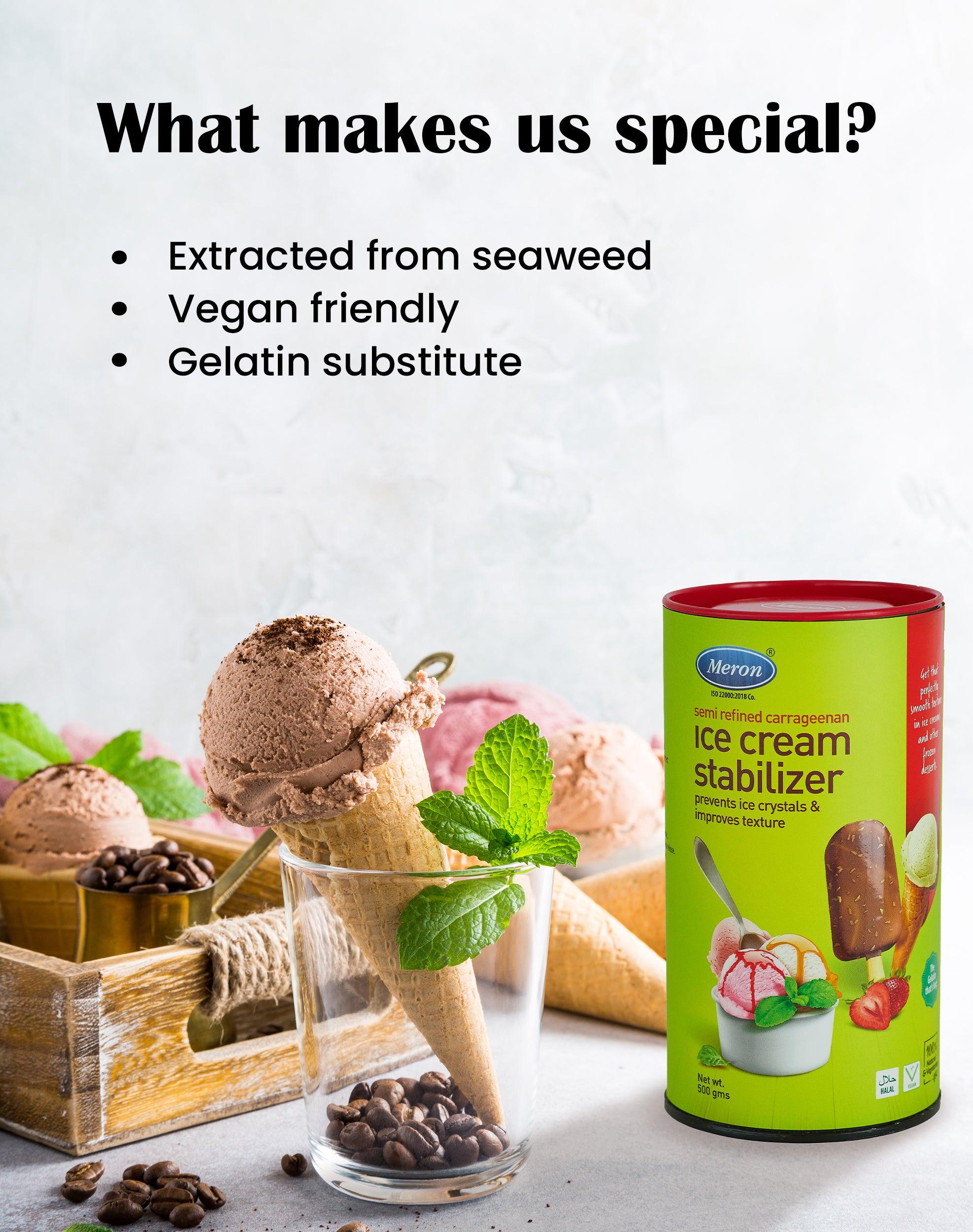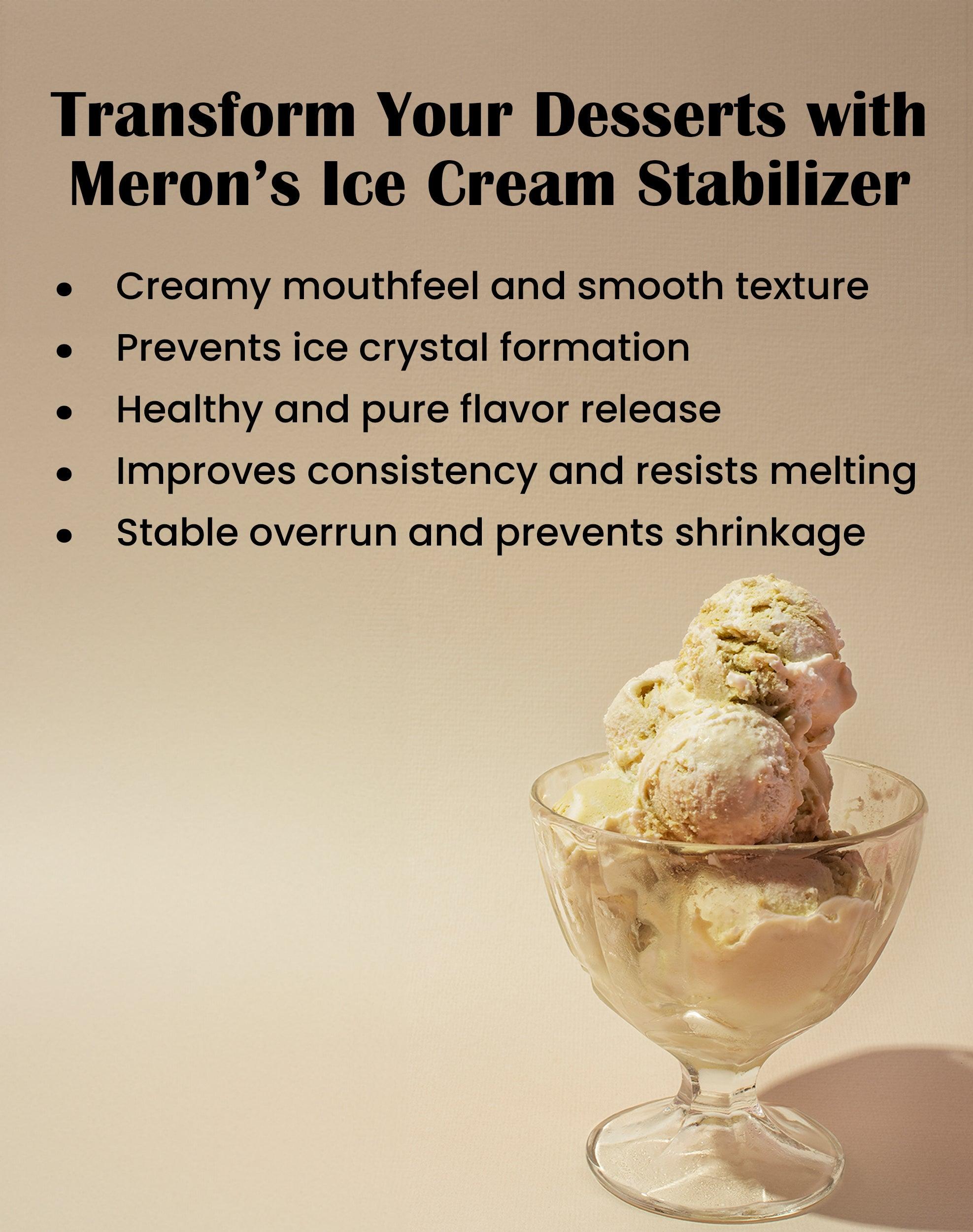 Meron Ice Cream Stabilizer - Semi-Refined Carrageenan unlocks the secrets of perfectly set, vegan frozen treats. This ethically sourced seaweed extract boasts superior thickening power, ensuring your homemade ice creams, confections, and baked goods achieve ideal texture every time. More than just a vegan ingredient, Meron stabilizer elevates your creations with a creamy mouthfeel, smooth texture, and pure flavor release. Enjoy improved consistency and impressive melting resistance with every scoop, enhancing your desserts to professional standards.