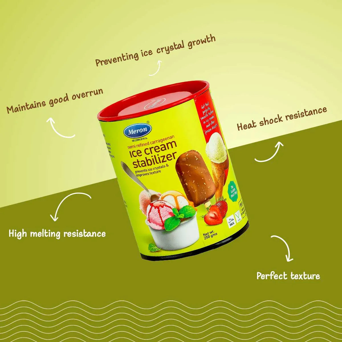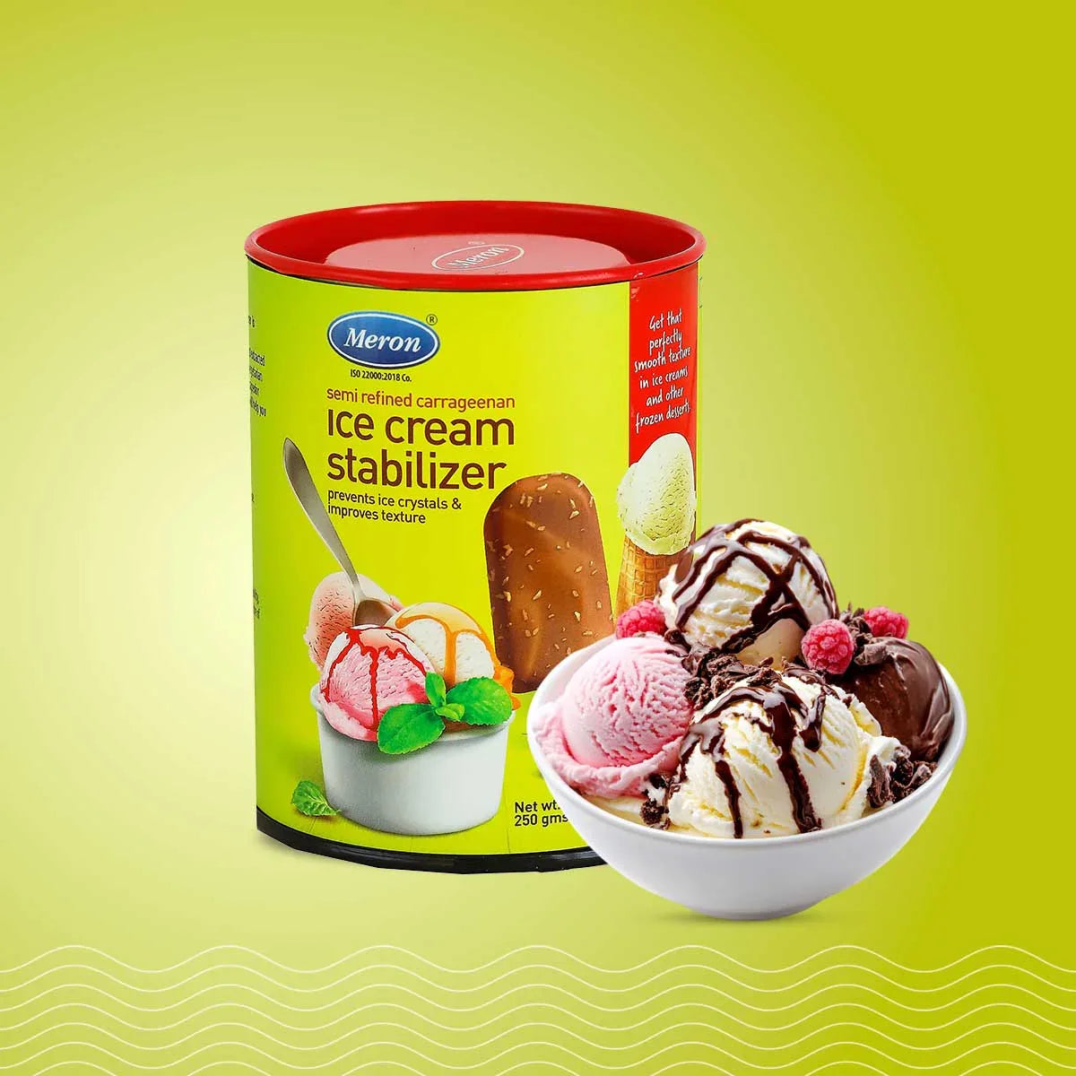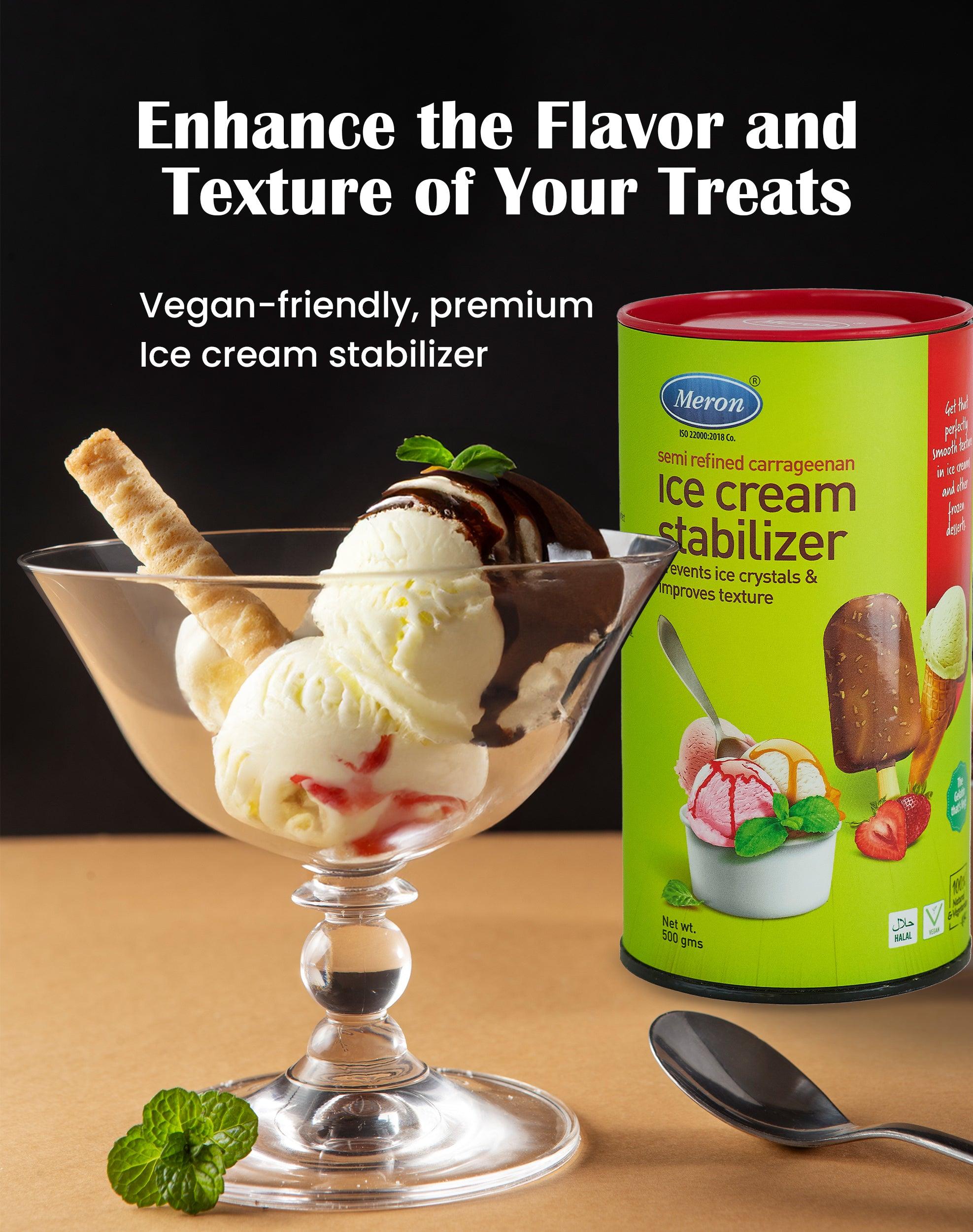 Meron Ice Cream Stabilizer - Semi-Refined Carrageenan unlocks the secrets of perfectly set, vegan frozen treats. This ethically sourced seaweed extract boasts superior thickening power, ensuring your homemade ice creams, confections, and baked goods achieve ideal texture every time. More than just a vegan ingredient, Meron stabilizer elevates your creations with a creamy mouthfeel, smooth texture, and pure flavor release. Enjoy improved consistency and impressive melting resistance with every scoop, enhancing your desserts to professional standards.