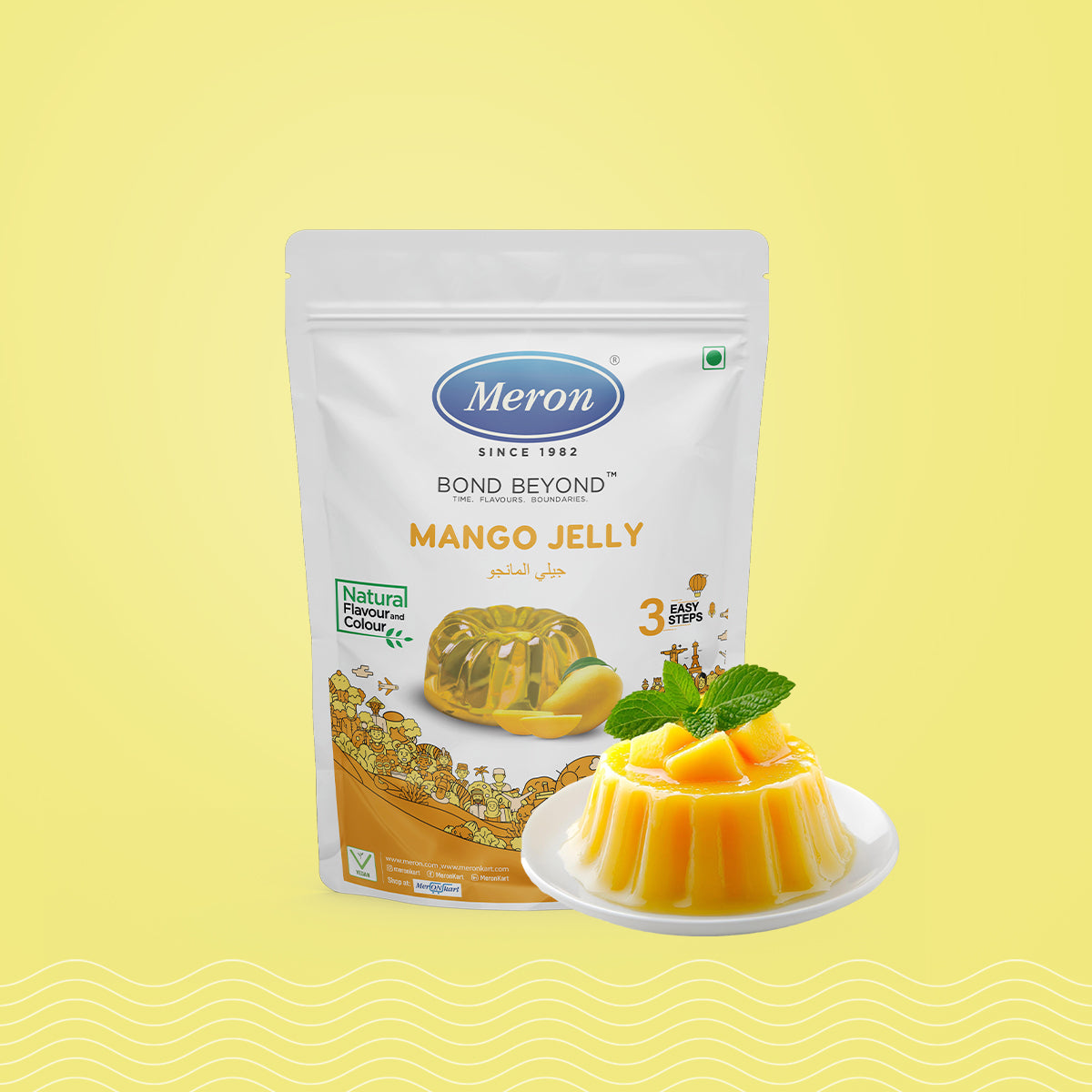 Meron’s mango Jelly is a light and decadent dessert with a velvety soft texture. it can be enjoyed on its own as a light and refreshing dessert or along with other dishes such as fruit salads, yogurt parfaits, cakes, or as a topping for ice creams and puddings