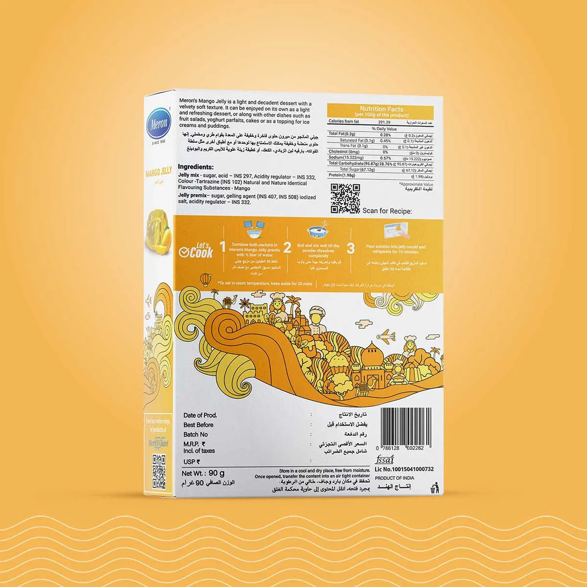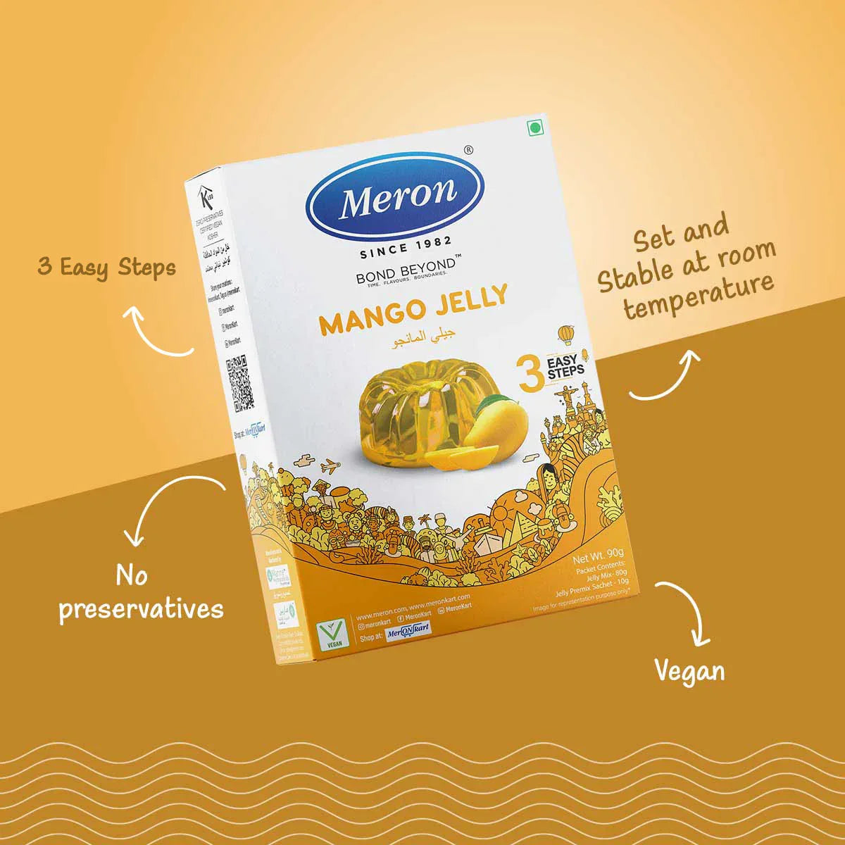 Meron’s mango Jelly is a light and decadent dessert with a velvety soft texture. it can be enjoyed on its own as a light and refreshing dessert or along with other dishes such as fruit salads, yogurt parfaits, cakes, or as a topping for ice creams and puddings (90gms)