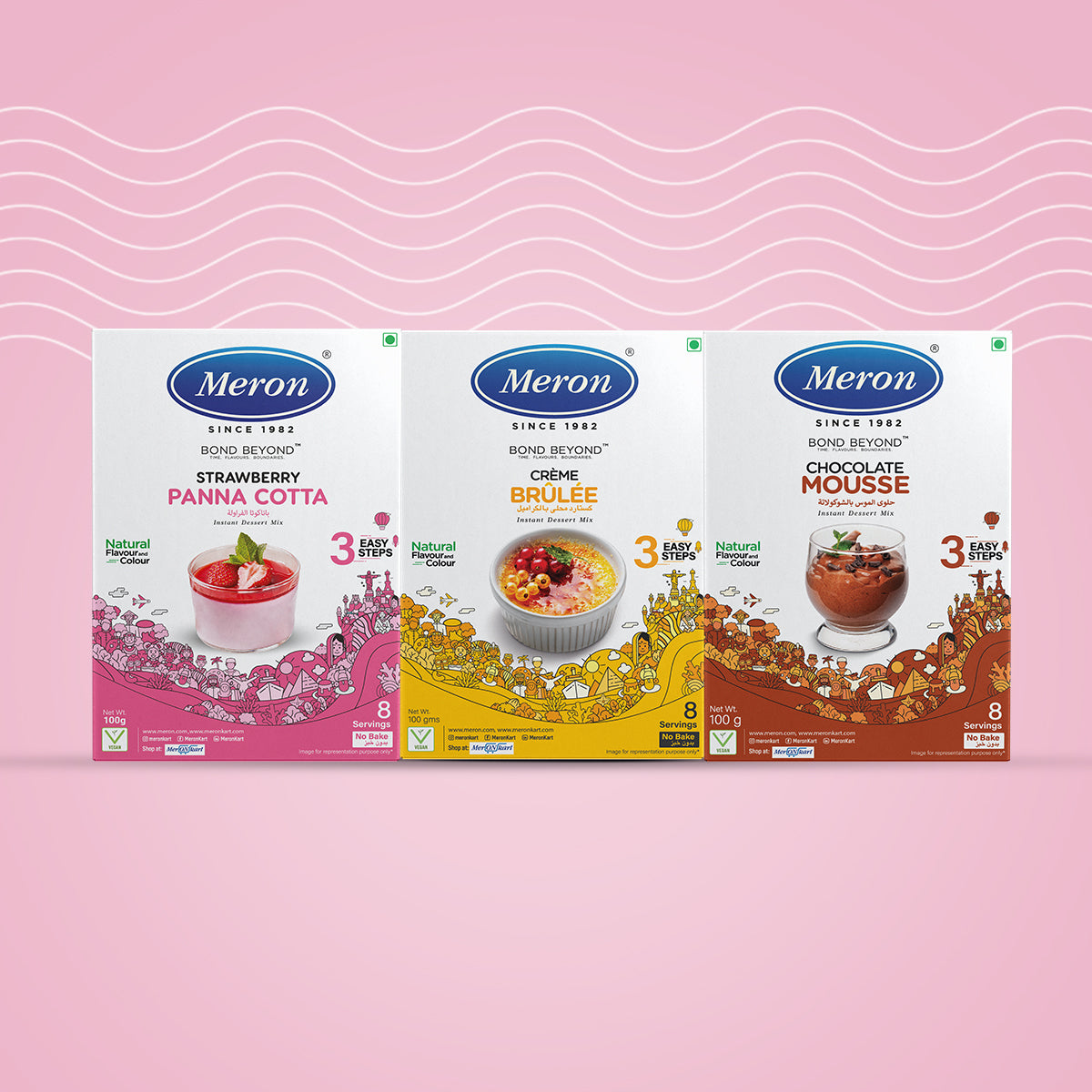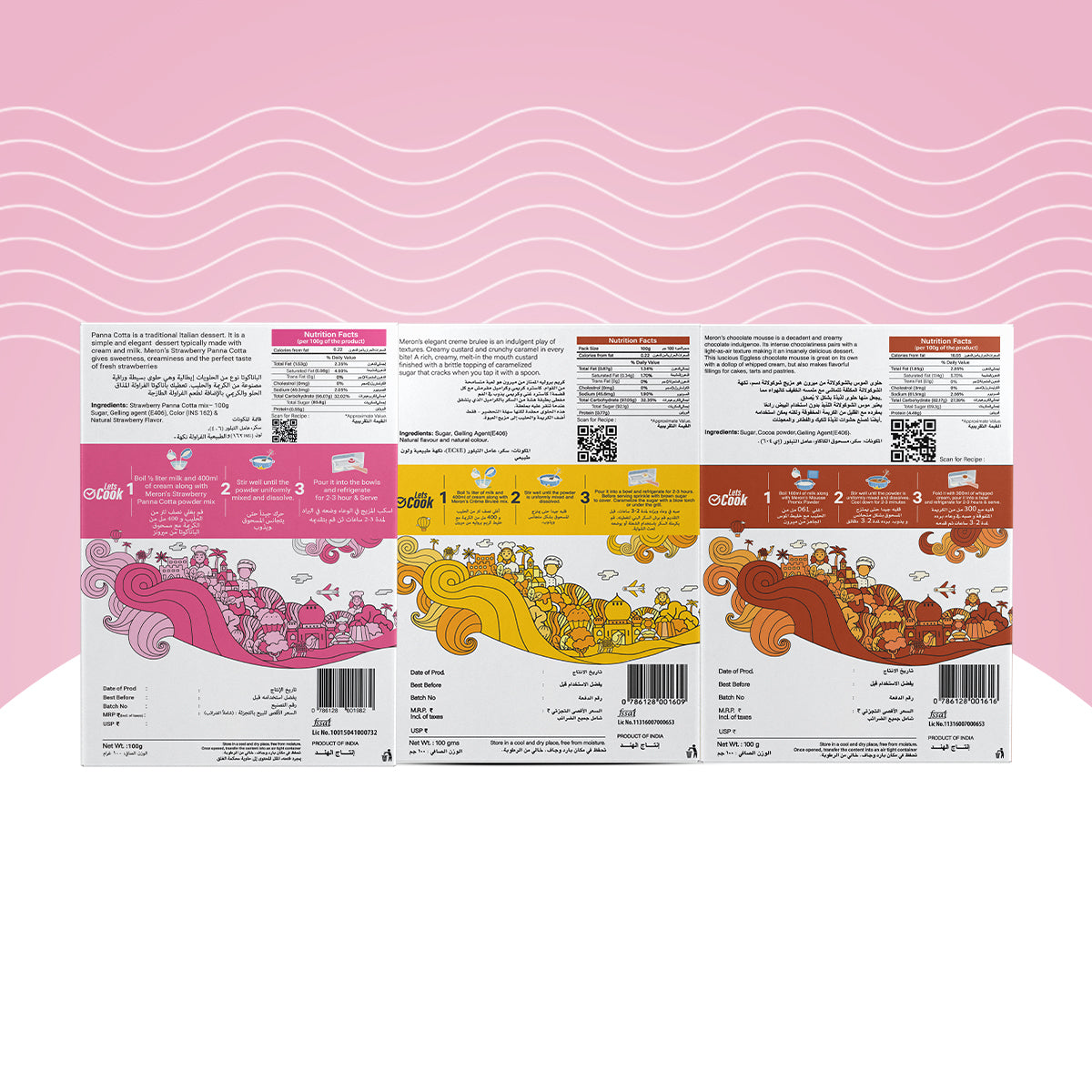 Indulge in the ultimate trio of dessert delights with Meron's Instant Dessert Mix Combo. Elevate your sweet cravings with the perfect blend of Chocolate Mousse, Creme Brulee, and Strawberry Panna Cotta, crafted to perfection for your convenience and pleasure.