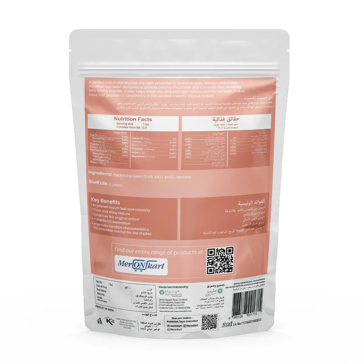 Our Milkshake Stabilizer has been designed to provide creamy mouthfeel and a smooth texture along with foam stability. Flavours can be further added by mixing the stabilizer with milk, chocolate, strawberry or vanilla syrups. Our Milkshake stabiliser also helps attain the whipped light texture that homemade shakes have and provides a consistency in the aerated, creamy viscous texture.