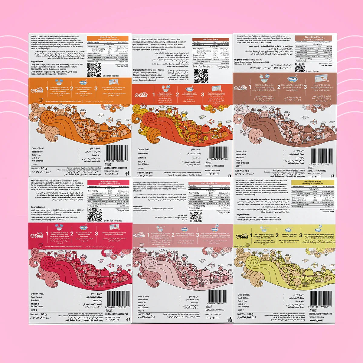 Meron’s Instant Dessert Mix Combo-6 is your ticket to dessert heaven! Featuring Caramel Pudding, Chocolate Pudding, Mango Pudding, Strawberry Custard, Mango Custard, and Vanilla Custard, this pack offers a rich variety of flavors to suit everyone’s taste. Vegan and free from artificial preservatives, these mixes are easy to prepare and make you feel like a pro in the kitchen. Surprise your loved ones with these easy-to-make desserts without breaking a sweat!