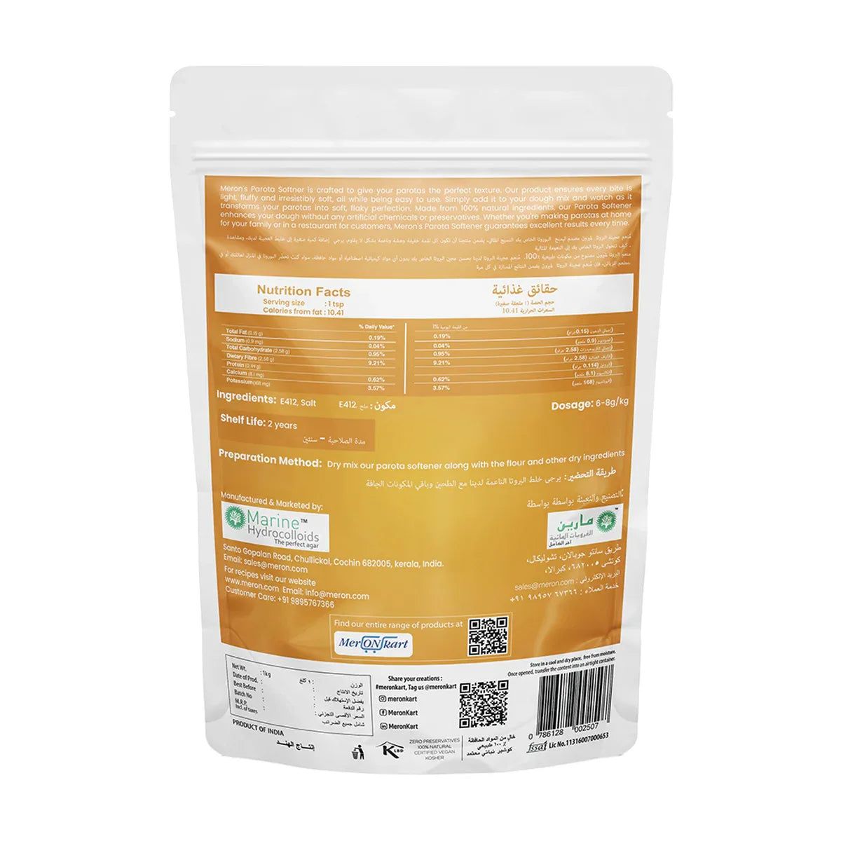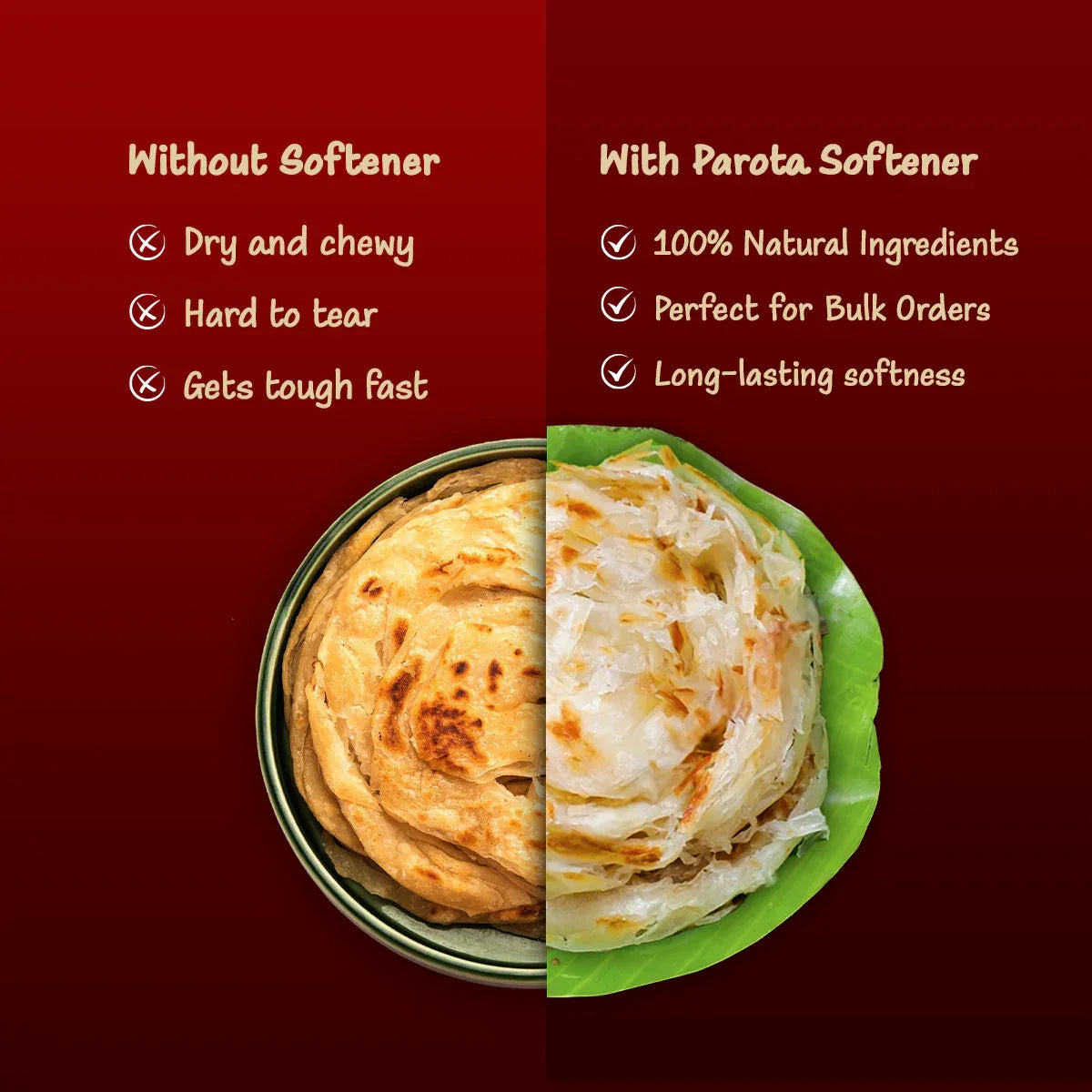 Direction of Use: For perfectly soft and layered parotas, add 8 grams of Parota Softener to every 1 kg of maida (all-purpose flour).