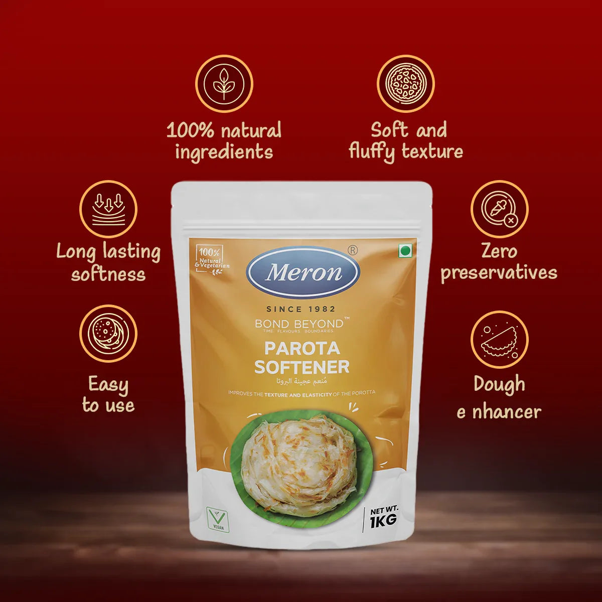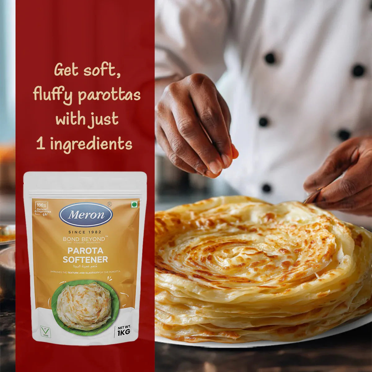 Meron's Parota Softener is crafted to give your parotas the perfect texture. Our product ensures every bite is light, fluffy and irresistibly soft, all while being easy to use. Made from 100% natural ingredients, our Parota Softener enhances your dough without any artificial chemicals or preservatives. Whether you're making parotas at home for your family or in a restaurant for customers, Meron's Parota Softener guarantees excellent results every time.