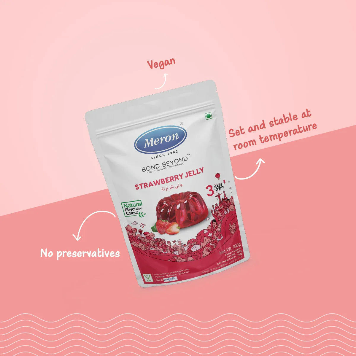 Meron's Strawberry Jelly embodies the essence of ripe strawberries in a delightful, jiggly treat, perfect for indulging for its sweet and fruity flavor. Whether enjoyed on its own or as part of a dessert ensemble, Meron’s Strawberry Jelly brings a burst of freshness and sweetness to the palate.