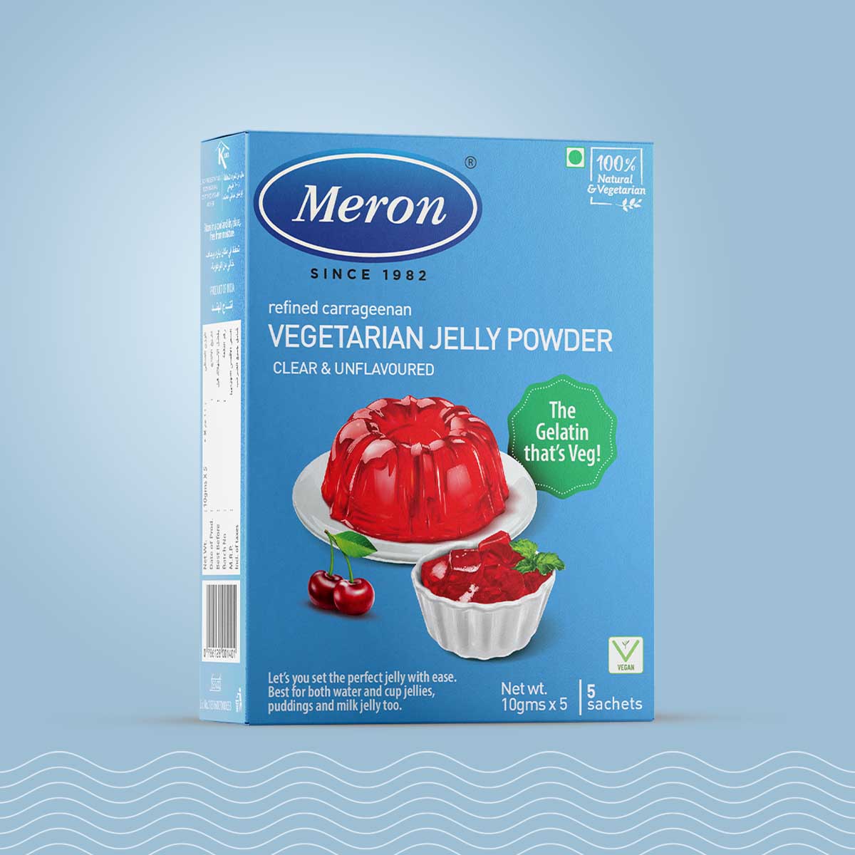 Our Vegetarian Jelly Powder gets set in a short time, with minimal water separation. 100% certified Vegan product extracted from seaweed, water-soluble and easy to set at room temperature. Your ideal choice for water and milk-based jellies, cup jellies and a wide range of other gel textures. The combo box consists of five individual sachets and each sachet contains a generous 10 grams of the product.